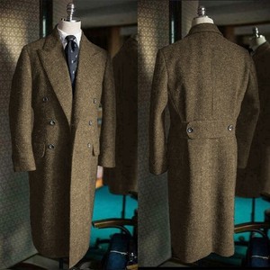 Abrigos largos de espiga para hombre abrigos de tweed mezcla de lana doble pecho negocios