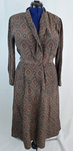 Vestido recto maxi poliéster estampado tribal geométrico hecho a mano vintage años 80 L - XL
