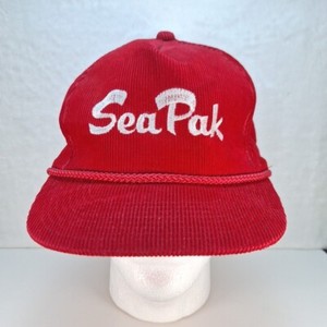 Gorra de pana roja vintage SeaPak Snapback gorra publicidad retro limpia con cuerda