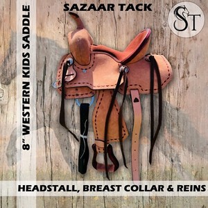 Juego de tachuelas de cuero mini silla de montar de caballo miniatura occidental de 8" para niños