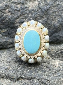 Antiguo Anillo Art Deco Oro Amarillo 14K Grande Turquesa Perla Cuentas Talla 6 con medidor 1 289,68 EUR