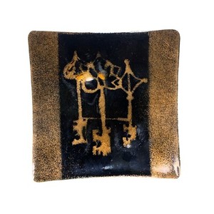Plato de cerámica de arte de estudio vintage con borde festoneado esmalte azul marrón firmado 18,97 EUR