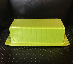 Plato de mantequilla verde de plástico vintage empotrado patrón de canal ligero 2 piezas