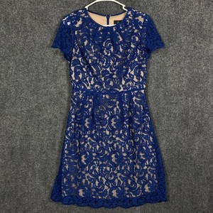 Vestido Adrianna Papell Para Mujer 6 Azul Encaje Calce y Acampanado Forrado Manga Corta Cóctel 30,17 EUR