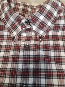 Eddie Bauer Para Hombres Rojo/Negro Cuadros Manga Larga Botones Cuello L Alto