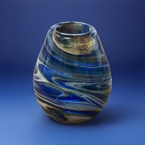 Jarrón azul Mtarfa Art Glass 1989 forma inusual