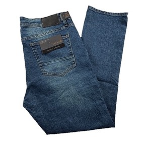 Pantalones de mezclilla para hombre de níquel y hierro 34x30 modernos calce ajustado cremallera frontal elásticos azules