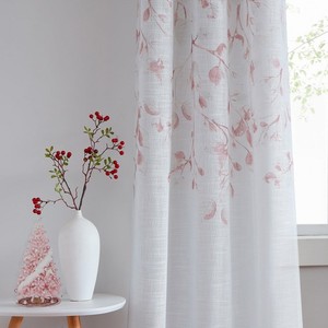 Panel de cortina de ventana de lino transparente metálico con estampado floral de hojas para vida rústica... 48,47 EUR