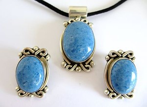 Juego de pendientes/colgantes de plata esterlina 0,925 incrustaciones sintéticas de turquesa hechas por Taxco