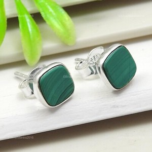 Square Malachite Stone Solid 925 Silver Women Gift Stud Earrings
