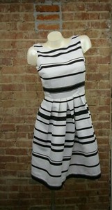 White House Black Market WHBM Womens Dress Sz 4 White Black Stripe Fit Flare