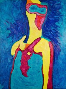 Pintura al óleo "Frogman" firmada única por Prof. em. Andreas Loeschner-Gornau