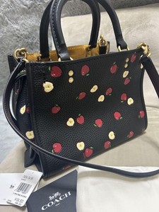 [Como nuevo] Coach 76054 Rogue 25 con estampado de manzana disperso negro Japón limitado