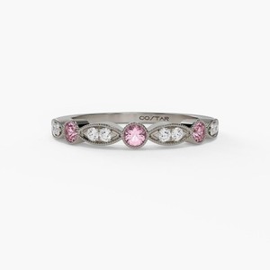 Alianza de boda de aniversario de diamantes y turmalina rosa o oro blanco de 14 k