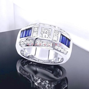 Piedra preciosa de zafiro azul talla baguette con anillo de plata de ley 925 para hombre #E403