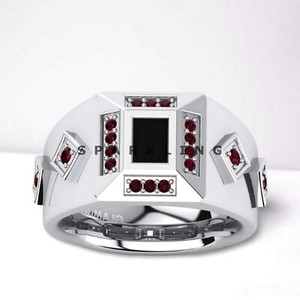 Piedras preciosas de corte esmeralda rubí con anillo de plata de ley 925 para hombre #996