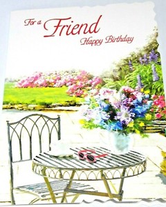 Good Friend Birthday Card. Garden Table Theme. Spring Season Cards.