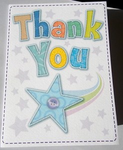 Tarjeta de agradecimiento. Gama de puntadas BonBon. Tema Estrella Azul.