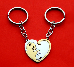 Lindo Llavero Corazón Gato Mejor Regalo para Amante Sus Parejas Amantes 1 Par Anillo