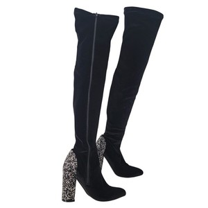 Bota Sobre la Rodilla Cremallera Brillo Tacón Bloque Terciopelo Talla 7 Caprichoso Fiesta Concierto 30,39 EUR