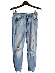 Pantalones de mezclilla para mujer Kancan lavado ligero tiro alto recortados desgastados talla 9/28
