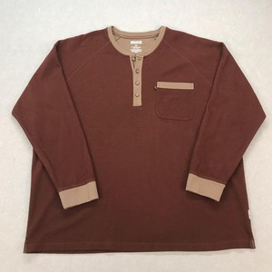Camisa Henley Duluth Trading Co Para Hombres 3XL Marrón Tostado Manga Larga Pecho Bolsillo Tejido