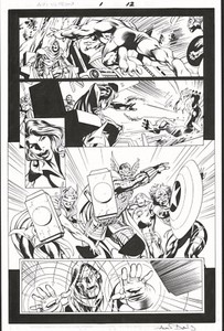 ¡ARTE ORIGINAL FIRMADO POR ALAN DAVIS 2015 DR. DOOM VS. AVENGERS! ¡ENVÍO GRATUITO!