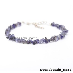 Pulsera ajustable de plata de ley 925 de iolita natural de 4-6 mm sin cortar de 7"