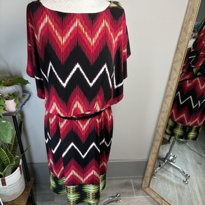 Vestido para mujer Maggy London 14 ~ Zig Zag geométrico mangas divididas con cinturón forrado
