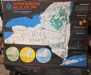 Mapa de recreación al aire libre del estado de Nueva York 36x32" folleto 1967 parques bosques peces