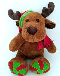 De colección Difícil de Encontrar Sueño 18" Alce de Navidad con sombrero rojo y bufanda de peluche relleno. 108