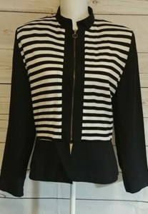 Chaqueta De Colección John Roberts Talla 14 Negro Blanco Rayas Cremallera Completa Mangas Largas 23,19 EUR