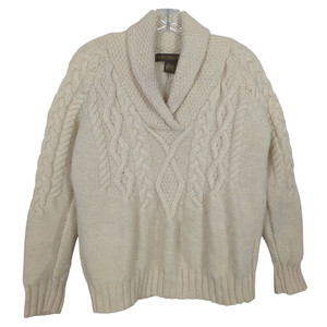 Suéter Inis Crafts Mujer Marfil Talla L Mantón Cuello Cable Tejido Pescador Irlandés