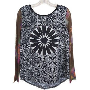 This blouse was shipped promptly (I received it before others that I had ordered later than this), well packaged. Communications were lovely; seller is friendly. The blouse is as described, but even better with fabulous Levi's fabric, and I paid a fair price for the item. Would recommend this seller highly. I love the top,and the unusual colors!