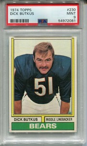1974 Topps #230 Dick Butkus PSA 9 como nuevo Chicago Cubs