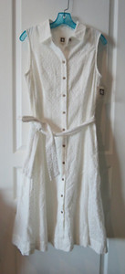 Vestido sin mangas Anne Klein nuevo con etiquetas 100 % algodón blanco ojales línea A midi con bolsillos talla 10 30,38 EUR