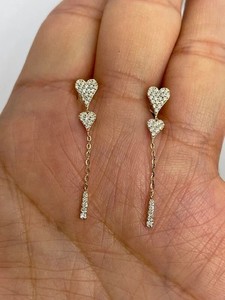 Pendiente de corazón de mujer de corte redondo de 2 quilates de moissanita real enchapado en oro amarillo de 14 quilates
