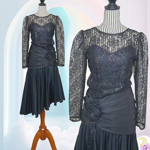 Vestido de fiesta falda circular estampado borde floral ilusión gasa años 50 vintage talla S