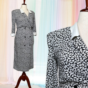 Vestido lápiz vintage años 90 JUNTOS azul lunares hasta la rodilla con botones talla M