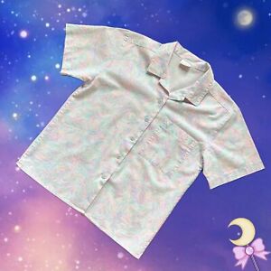 Blusa Vintage Años 90 TROPICAL Estética Planta Hoja Impresión Botón Talla M