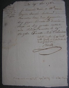 Charette de la Colinière. Redevance Deux milles livres à Grégoire Beauvais.1762