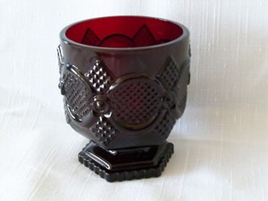 VASO AVON 1876 CAPA BACALAO ROJO RUBÍ 3,75" PATAS VINTAGE