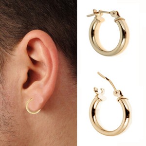 Pendiente de aro único tubular de oro amarillo macizo de 10K para hombre 14 mm x 2 mm (1/2 par)