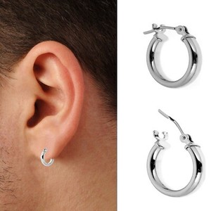 Pendiente de aro único tubular de oro blanco unisex de 10K para hombre 16 mm x 2 mm (1/2 par)