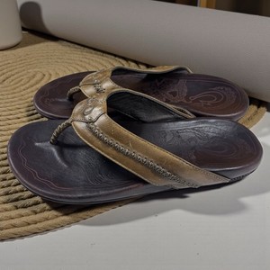 Sandalias chanclas de cuero marrón Olukai Mea Ola para hombre talla 9 EE. UU.