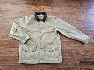 Chaqueta L.L Bean Para Hombres L Safari Caqui Botón Suave Shell Abrigo de Granero De Colección Nylon Usada en Excelente Condición