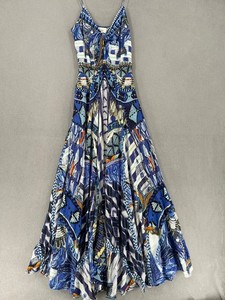 Camilla Dress Womens 10 Blue Silk Embellished A Line Maxi Sleeveless Strap