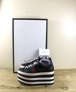 Gucci Tenis Mujer 10.5B Cuero Negro Peggy Plataforma Rayas Zapatos Italia