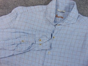 Camisa Lanvin Paris Para Hombre 15.5x39 Marrón Sólida Manga Larga Botón Delantero Francia