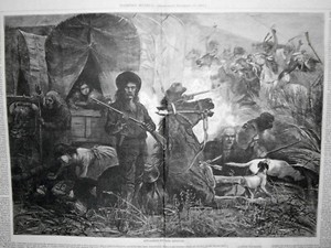 INDIAN WAR DAKOTOS, Attached by the Indians; large double page w/ text.1876